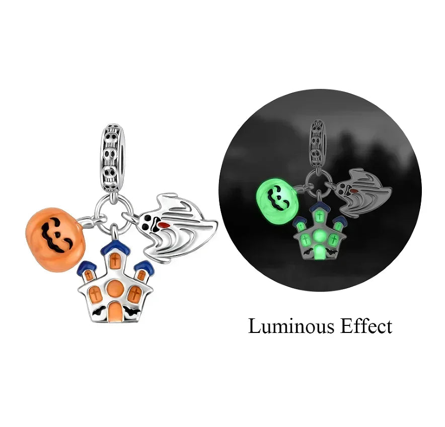 925 Sterling Silver Halloween Charms Set Pumpkin Skull Witch Ghost Beads for Bracelet Necklace Jewelry