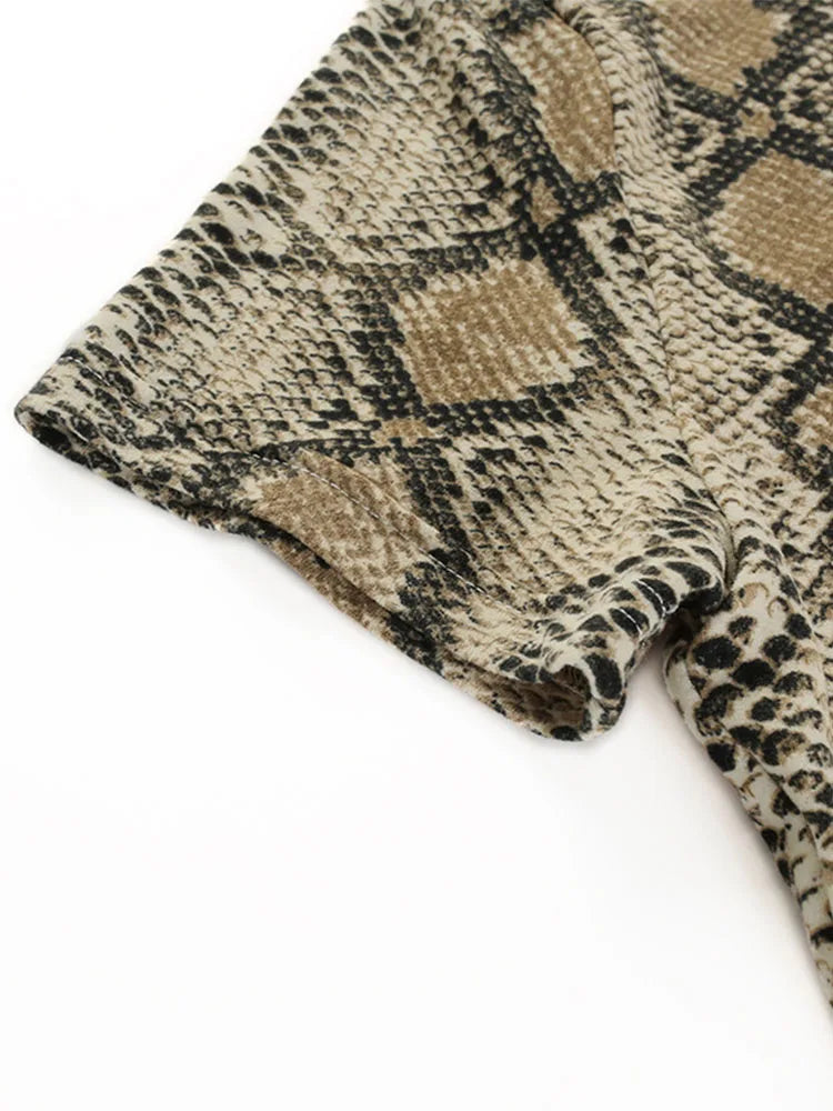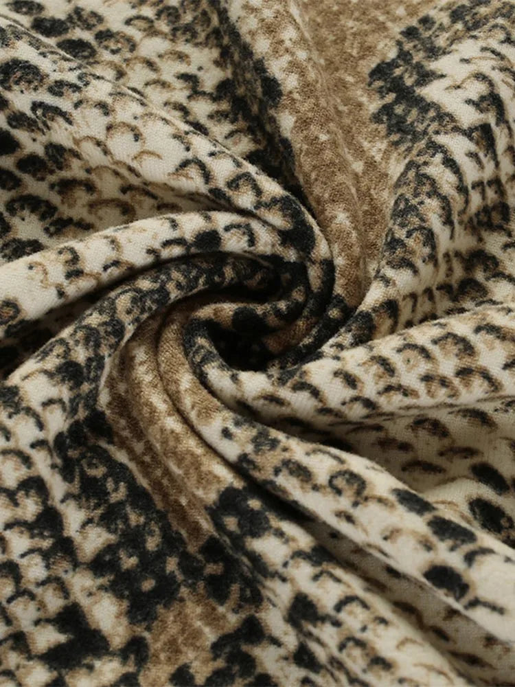 - Snakeskin print in neutral tones for easy pairing with denim, skirts, or layered pieces.