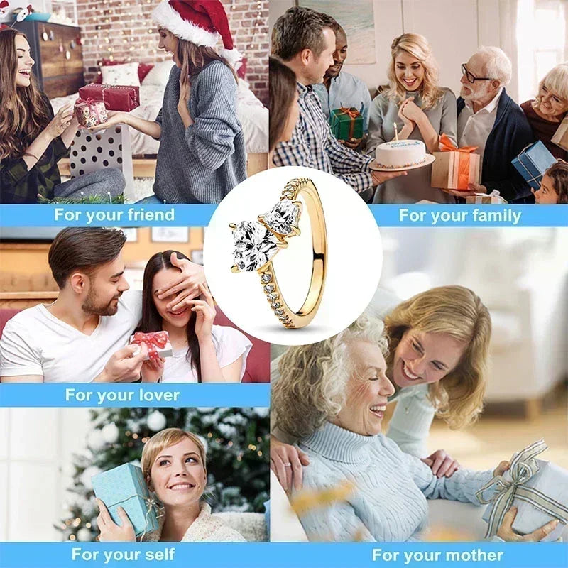 Gold Tone 925 Sterling Silver Square Heart Crown Ring for Women