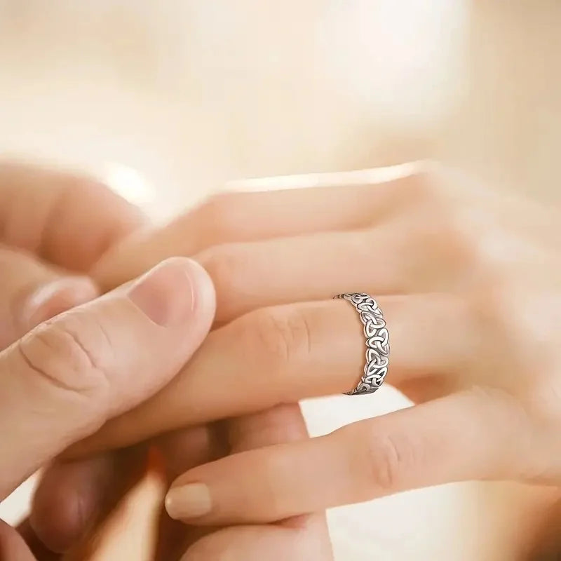 Huitan Glossy Sterling Silver Irish Knot Ring for Women - Exquisite Hollow Pattern Wedding Jewelry