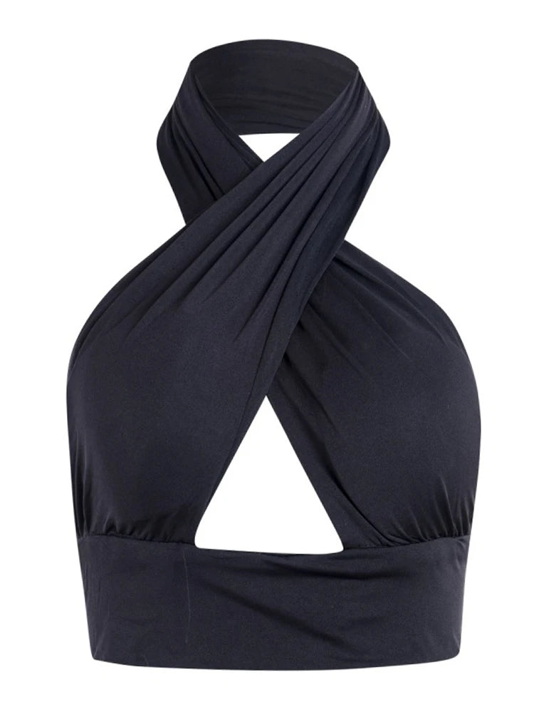Women Strappy Cross Over Front Cut Out Halter Neck Sleeveless Backless Crop Top Bandage Vest Summer Sexy Tops Woman Clothes S-XL