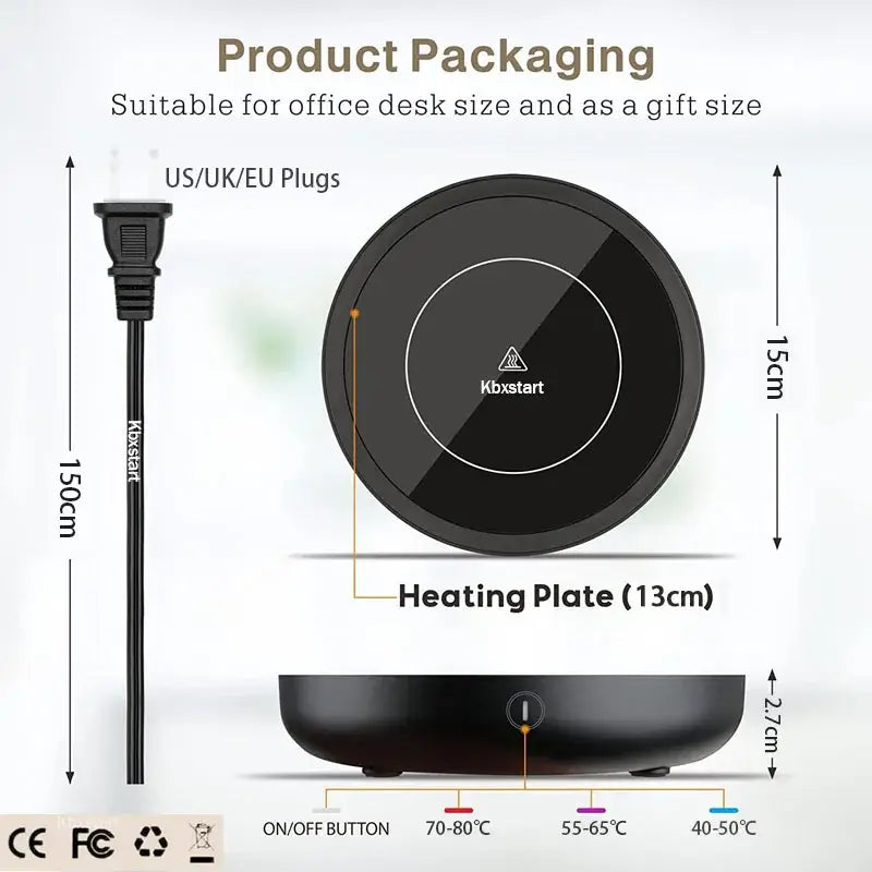 - Versatile Compatibility: The 5.2” heating plate accommodates various cup types including ceramic, stainless steel, and glass. For optimal results, use a thin-walled mug and cover it with a lid to retain heat.