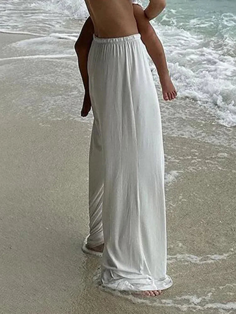 White Women's Casual Loose Straight Leg Sweatpants Shirring — Soft cotton–polyester broadcloth with a relaxed, loose straight leg and subtle shirring. Full-length, breathable with slight stretch; flat front and drawstring waist for a flattering, adjustable fit—perfect for lounging or casual outings. Shop now.