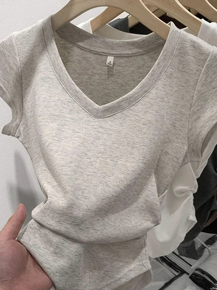 Dozw Women V Neck Elastic Korean Short Sleeve Summer Top