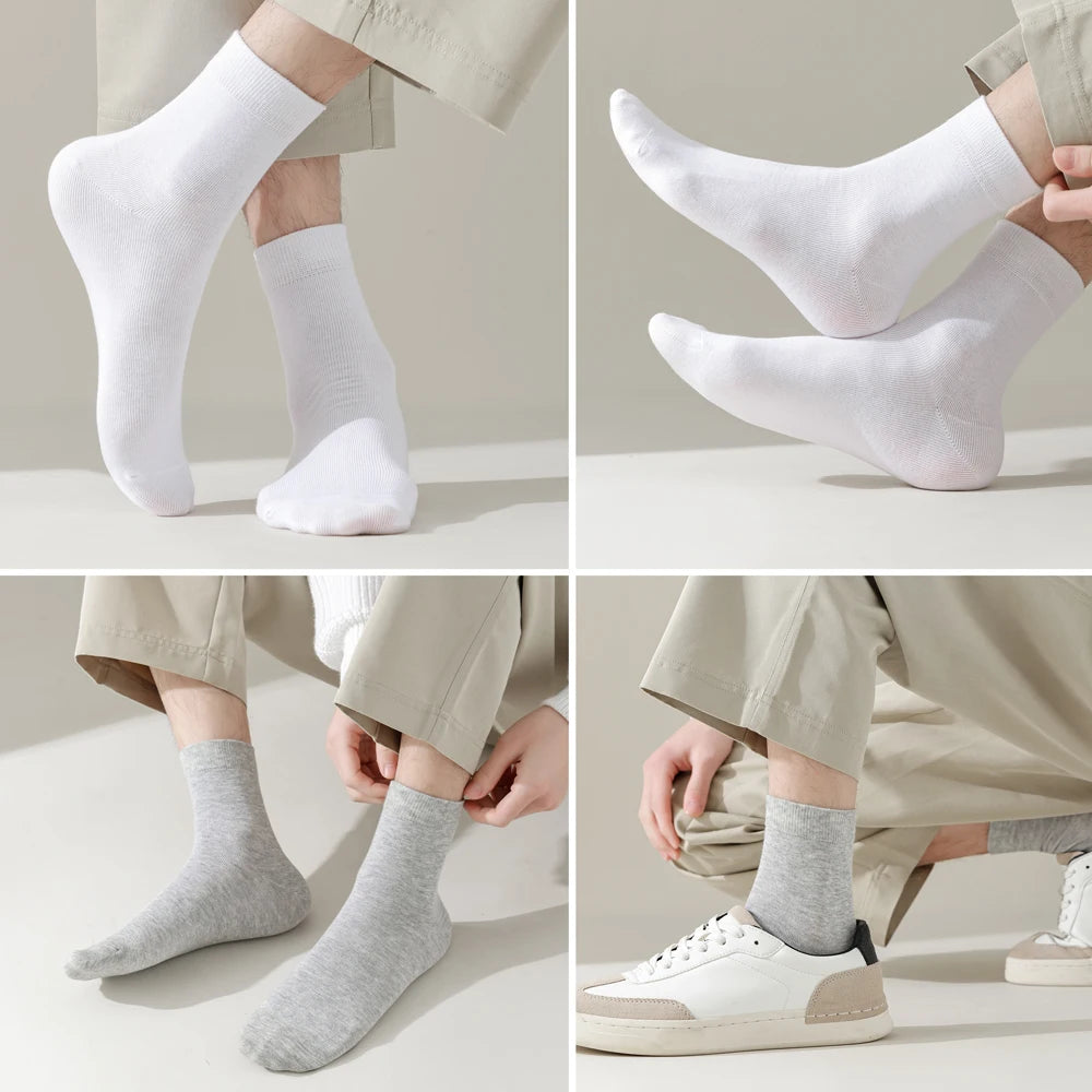 3 Pairs High Quality Casual Men's Business Socks by Bazaar Hub — soft, breathable cotton blend crew socks in black and white.
