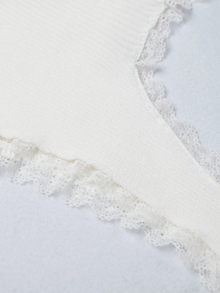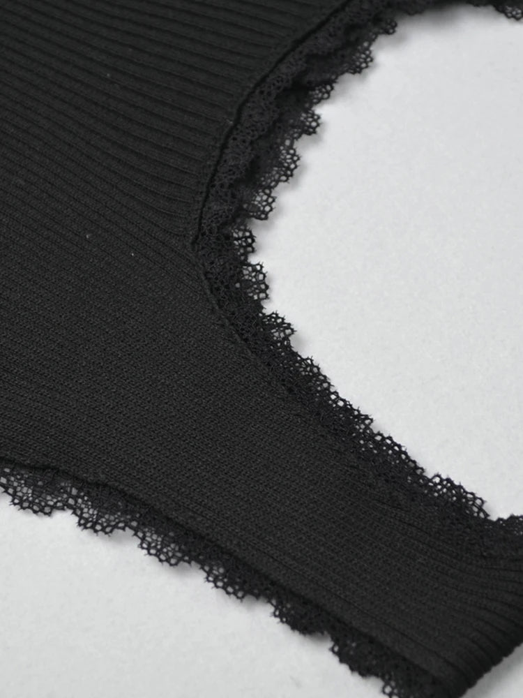 - Key features: square neck, lace-up detail, high-stretch cotton-poly blend, short knit silhouette.