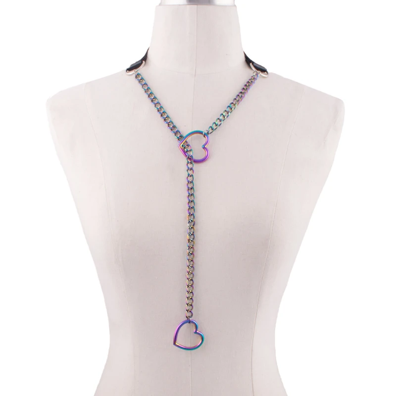 Ponte en el centro de atención con el Collar de cadena con correa de corazón, collar de cuero negro. , una pieza llamativa diseñada para mujeres que abrazan el Moda gótica y Joyería punk estética. Fabricado con precisión, este collar combina un estilo audaz con el máximo confort, convirtiéndolo en un accesorio imprescindible para cualquier persona con sentido de la moda.