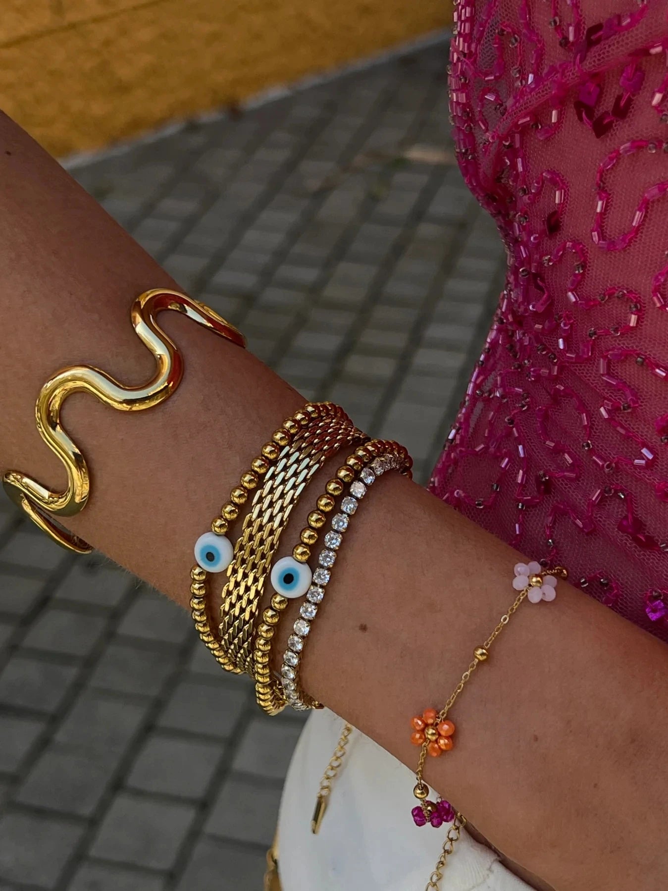 Discover timeless elegance with the Elegant Wave Design 18K Gold Plated Stainless Steel Jewelry Set for Women by Bazaar Hub. Crafted to perfection, this exquisite set features an open adjustable design, ensuring a perfect fit for any occasion, be it a party or a casual day out.