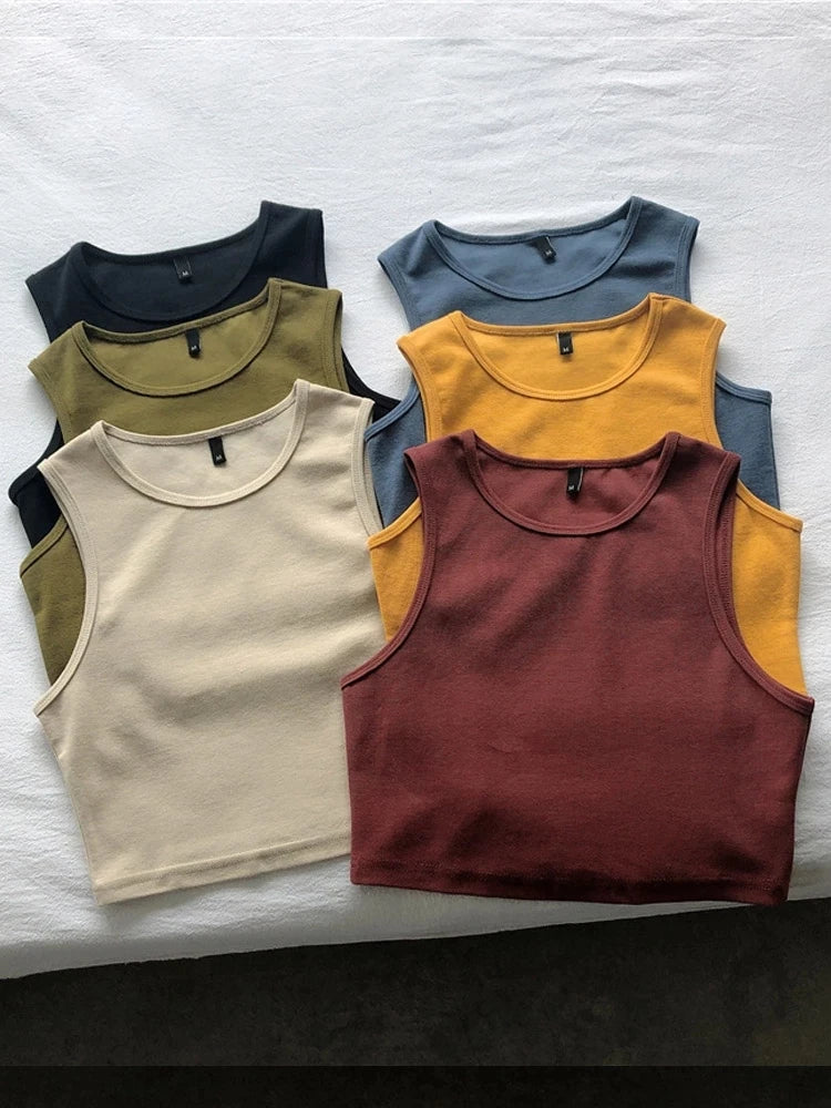 Summer new ladies retro crop top high waist slimming stretch slim short sleeveless bottoming top by Dozw — a flattering, high-stretch top designed for casual summer days.