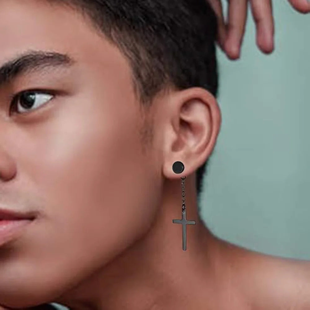 Introducing the Black Stainless Steel Zirconia Cross Piercing Pendant Earrings Set – the epitome of punk, trendy, and versatile men’s jewelry! Crafted by Bazaar Hub, renowned for quality and innovation, these earrings are a must-have accessory for the modern man.