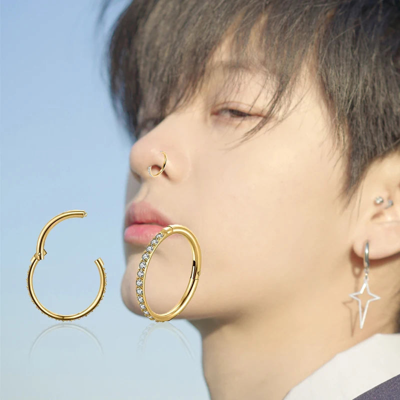 Stainless Steel CZ Septum Clicker 16G Hinged Nose Ring for Tragus Helix Daith Piercings