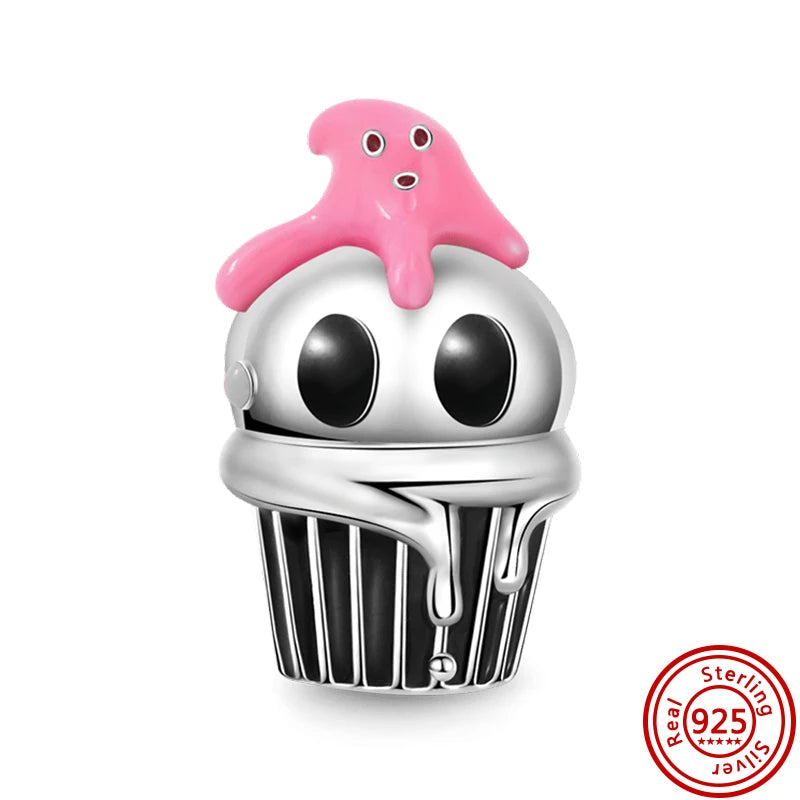 Springtime 925 Silver Pink Flower Ice Cream Charm Pendant for DIY Bracelets