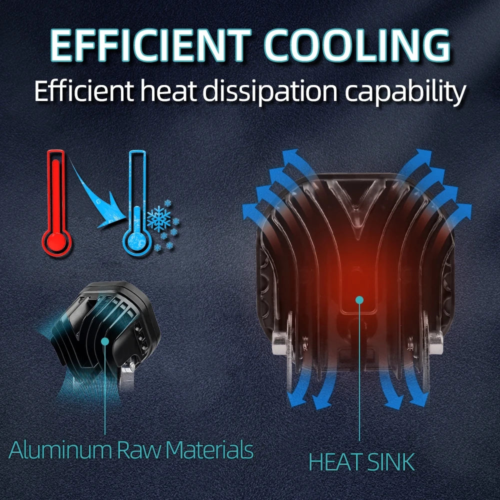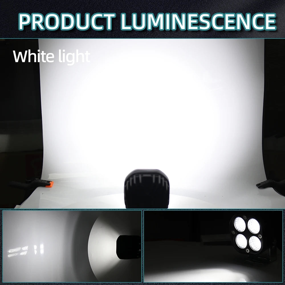 Illuminate your path with the Square LED Work Light Bar, featuring 4 powerful LED flood beams designed for motorcycles and driving fog conditions. With an impressive 40W output and a bright 6000K color temperature, this light ensures optimal visibility in any situation.