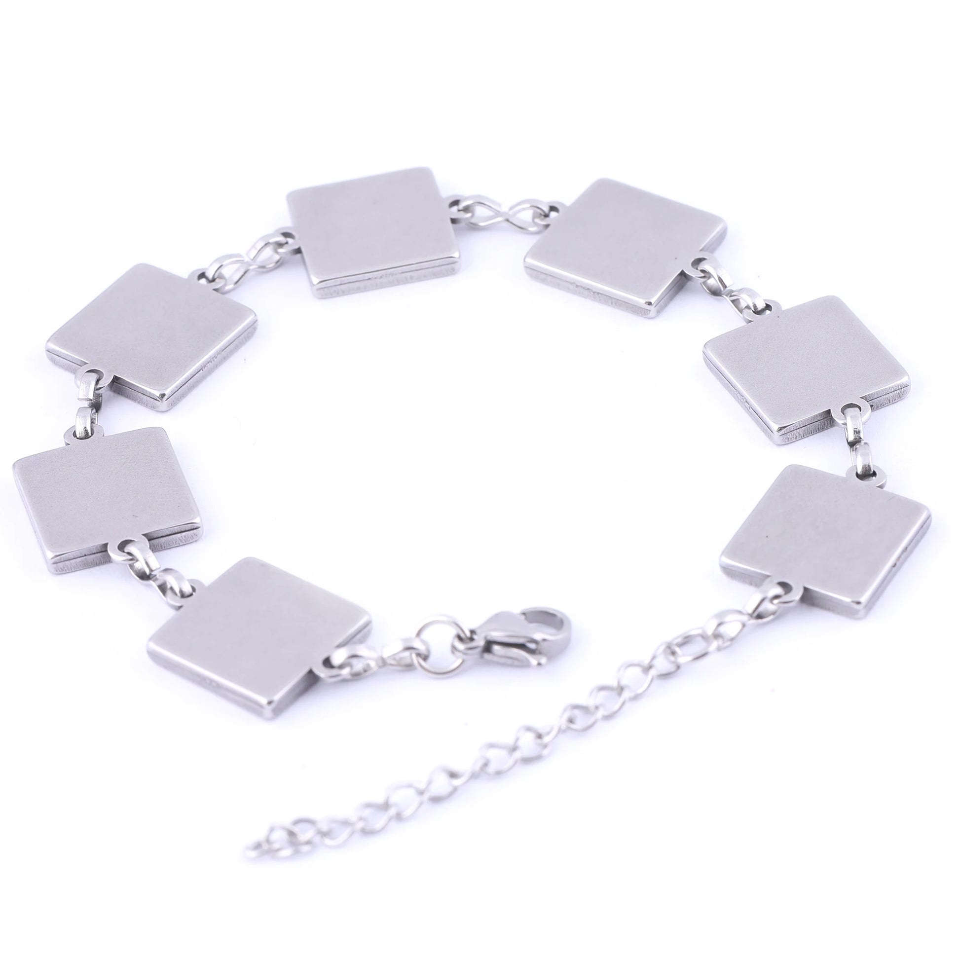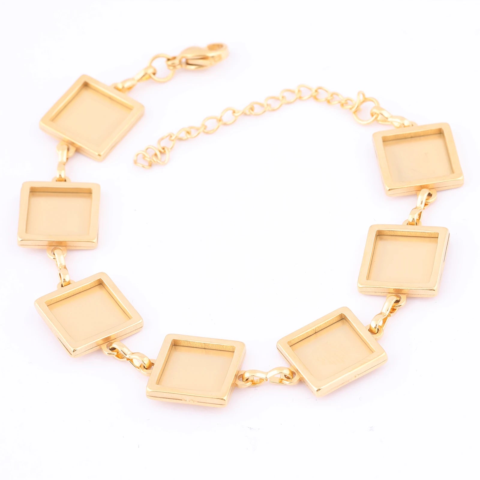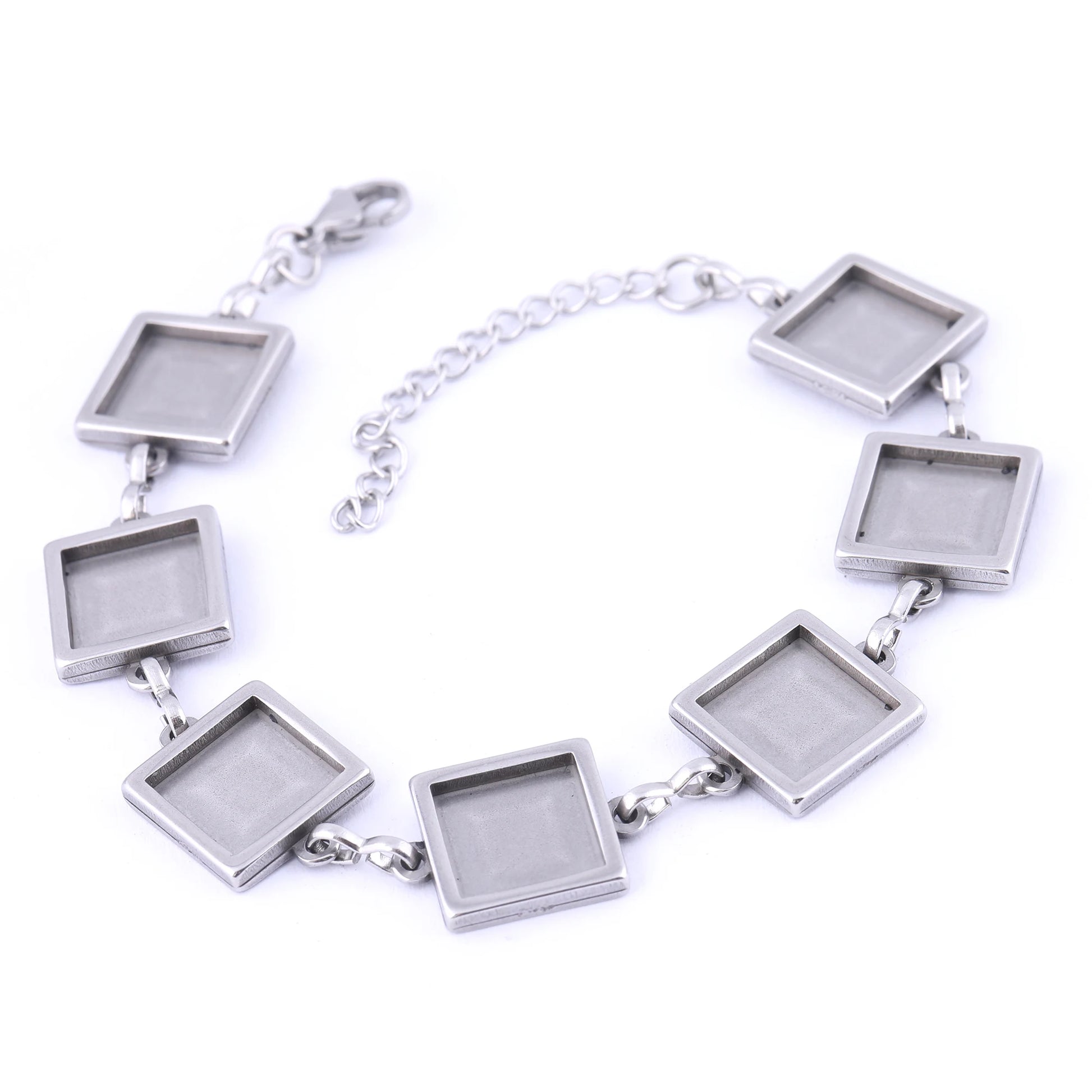 Stainless Steel Square Cabochon Bracelet Base Settings for DIY Jewelry Making