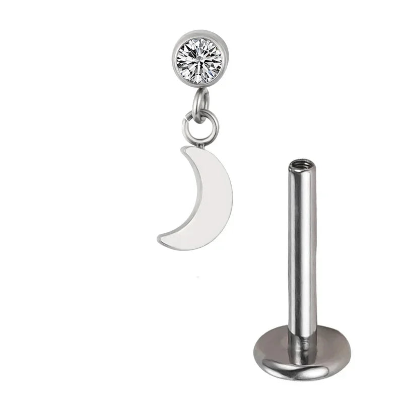 ASTM F136 Titanium Ear Piercing Pendant Chain Dangle Ear Studs with CZ Top Labret Lip Stud and Cartilage Earring Body Jewelry