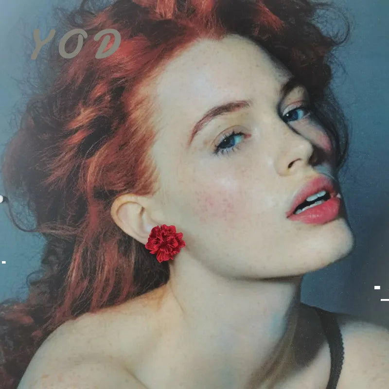 Elegant Red Flower Women's Stud Earrings - Unique Korean Floral Design Bohemian Accessories