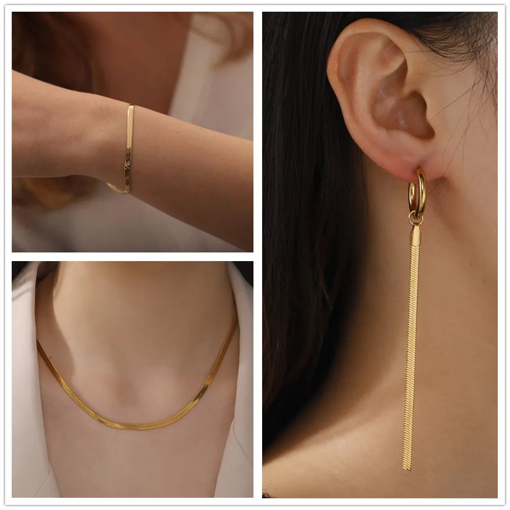 Hipee Lucky Snake Bone Jewelry Set for Women Stainless Steel Necklace Bracelet Earrings