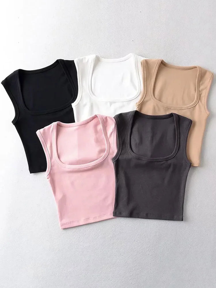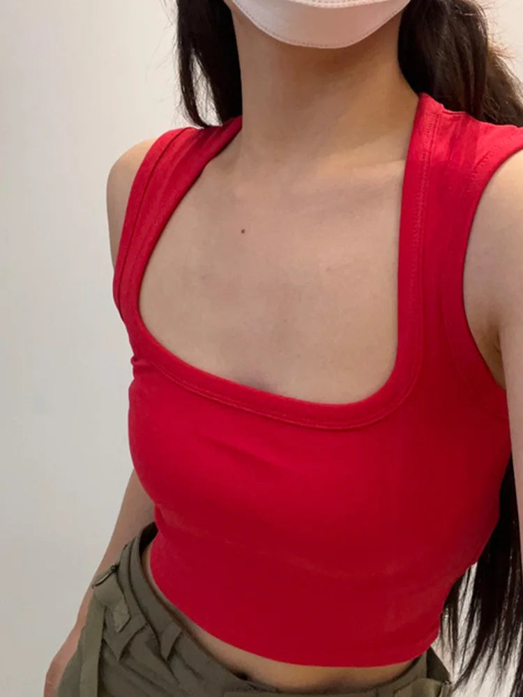 Deep Square Collar Vests 2025 Summer New Fashion Sexy Women's Crop Tops Sling Vest Camis