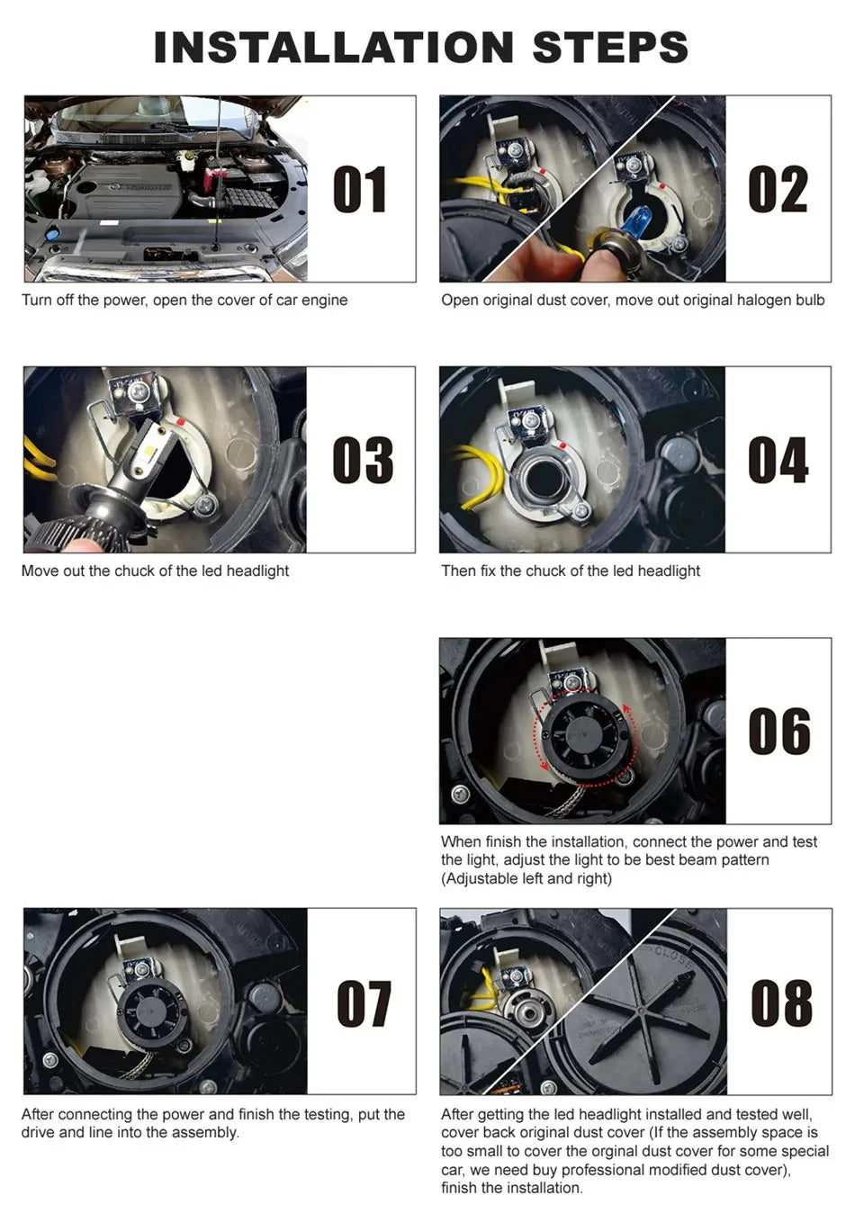 - Universal Fit: Compatible with H4, H7, H1, 9005, H11 sockets for versatile use