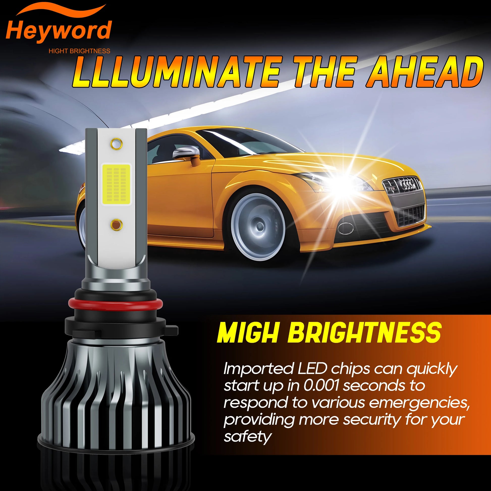 Heyword 90W 30000LM Turbo LED Universal Car Headlight Bulbs
