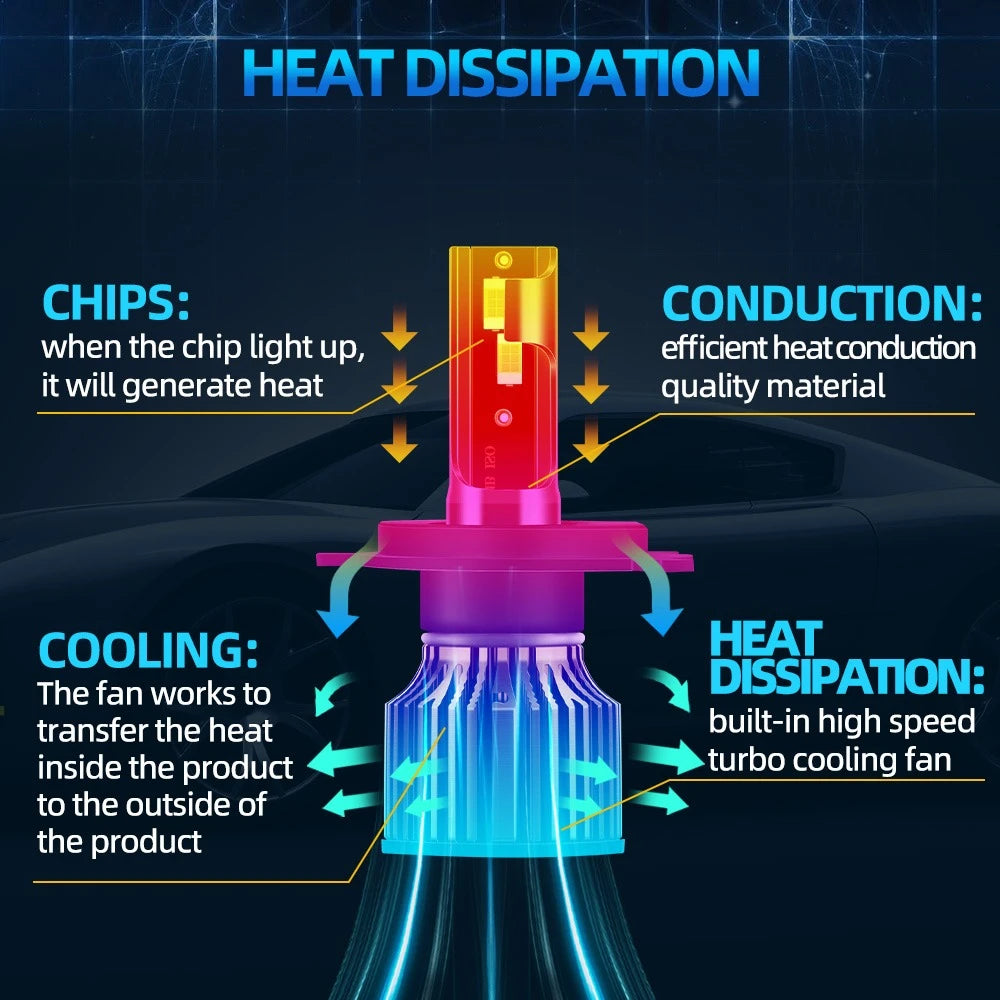 High-Performance LED Headlights 200W Turbo Lamp 6000K Bright White Car Lights