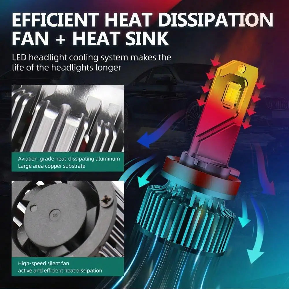 High-Performance Universal H11 LED Headlamp Set with CSP 3570 Chips and Advanced Cooling Fan