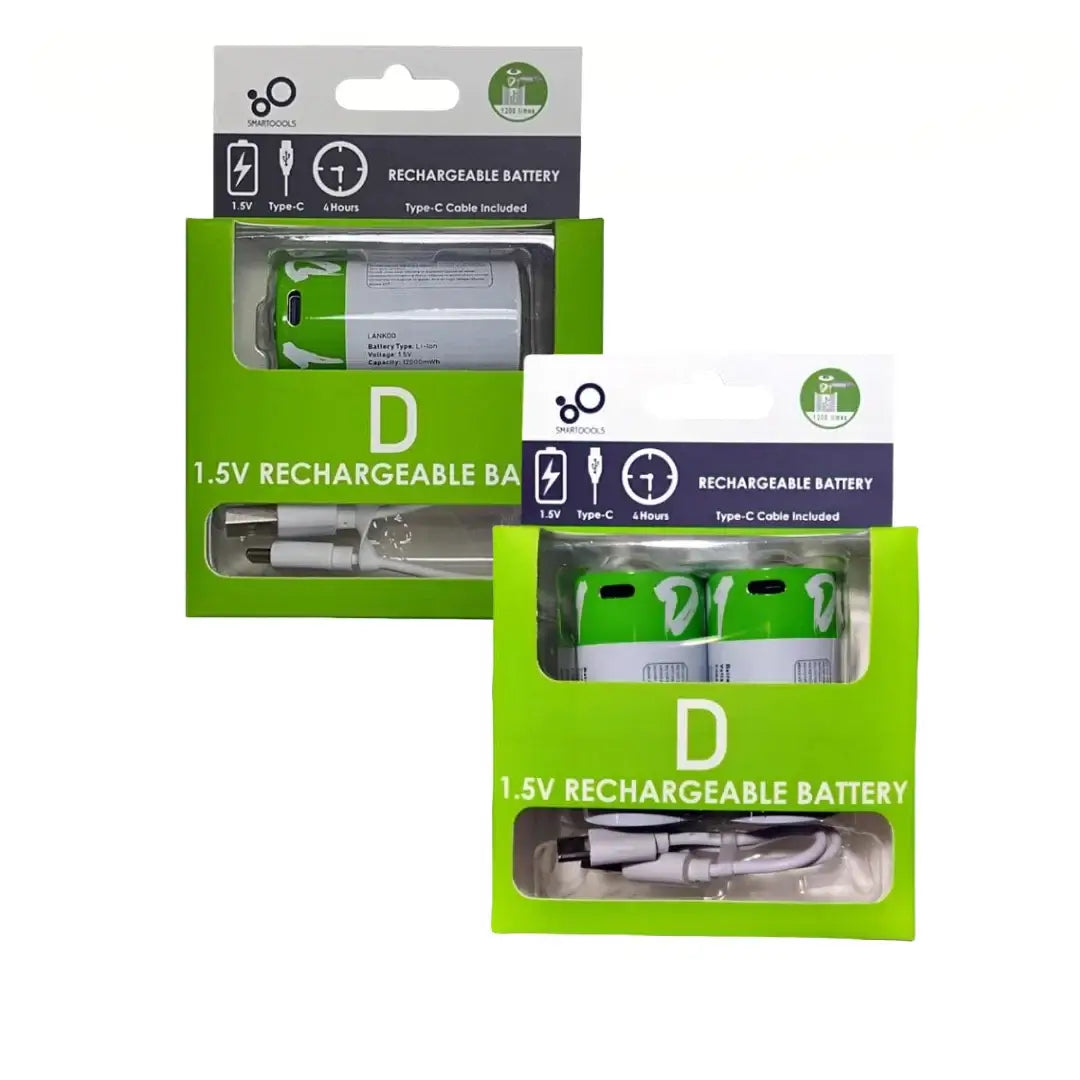 1# USB 1.5V Rechargeable D Size LR20 Li-ion Battery with Type-C Cable