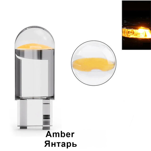 - Key features: T10 (W5W/194) interface, 6000K crisp white, COB glass, 12V, 0.36W each