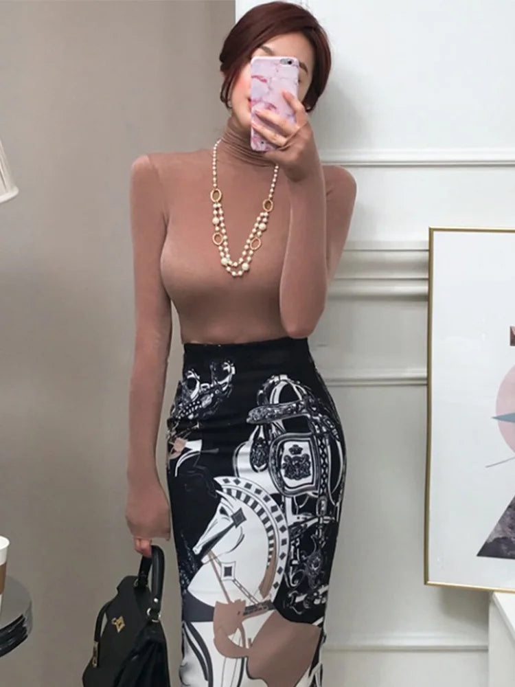 Fall 2024 Women See Through Long Sleeve Turtleneck Top