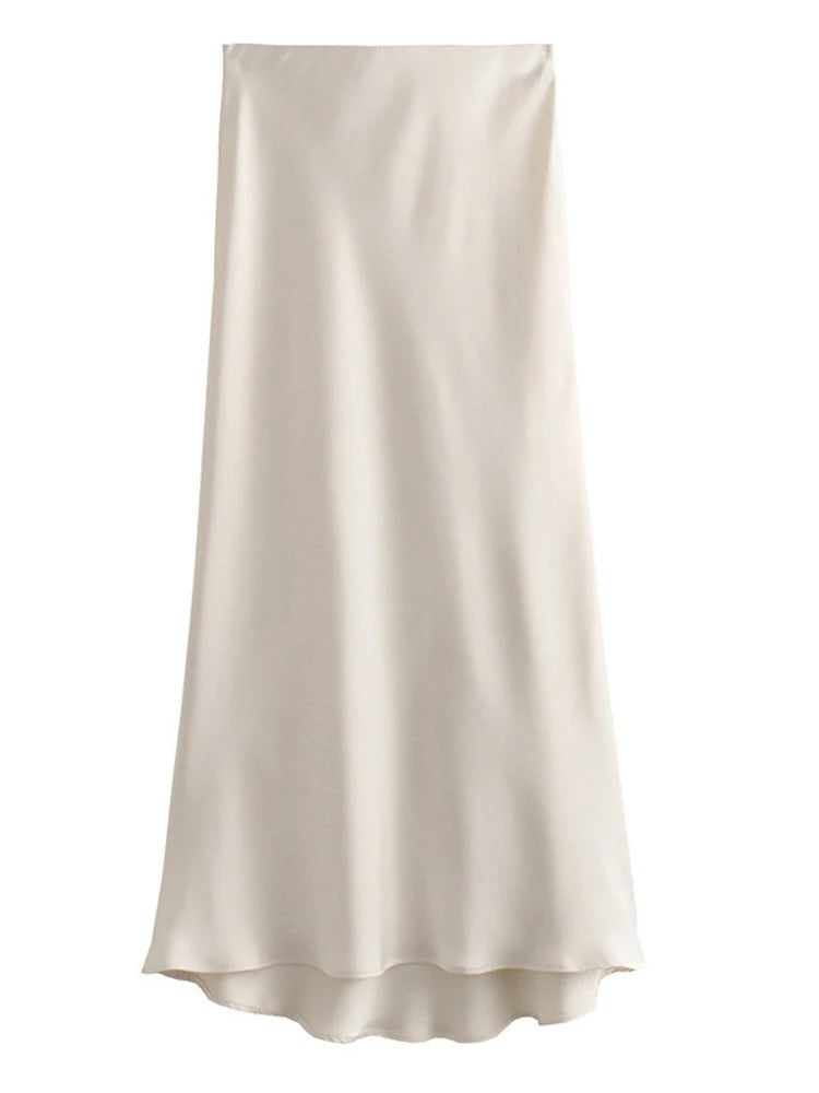 Black Satin High Waist Midi Skirt For Women Office Summer