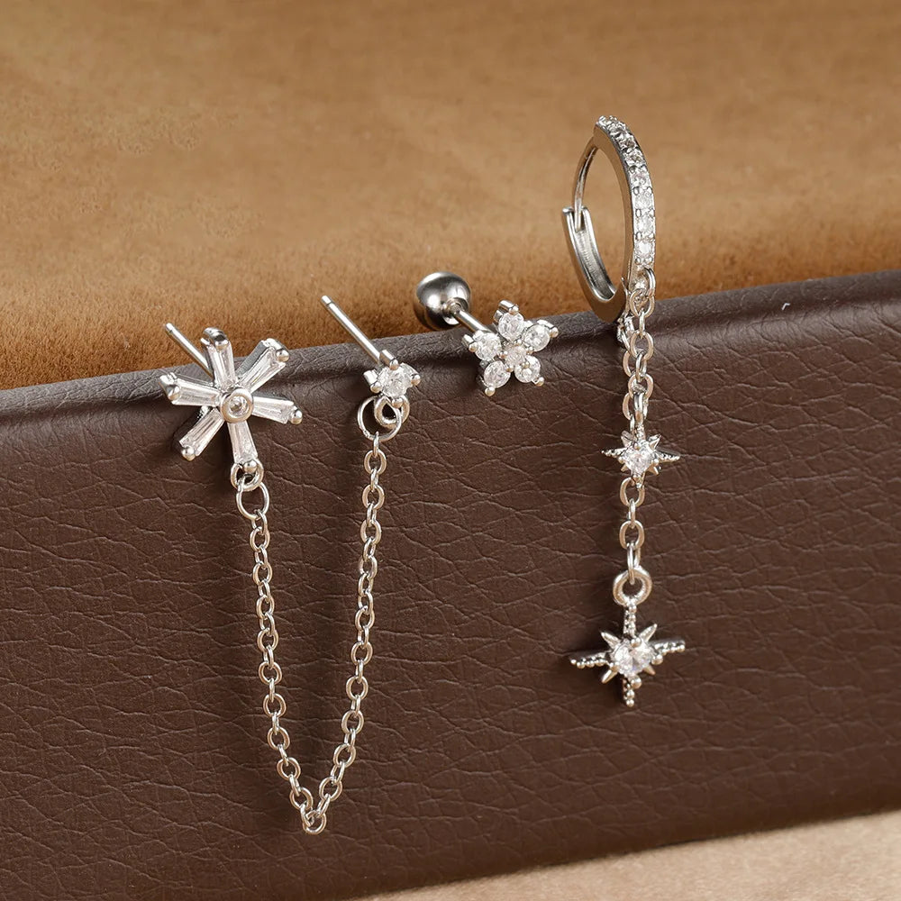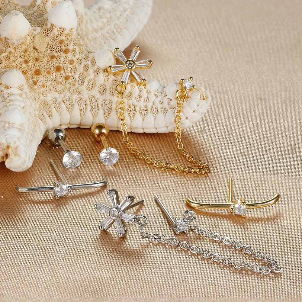 3PCS Gold-Plated Stainless Steel Stud Earrings Set for Women with Zircon Cartilage Piercing Fashion Jewelry