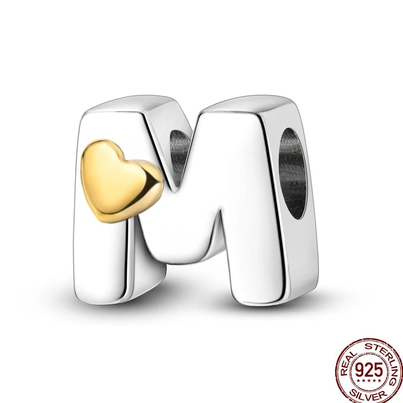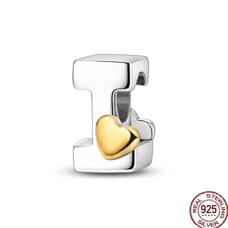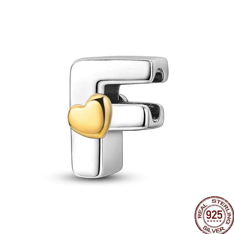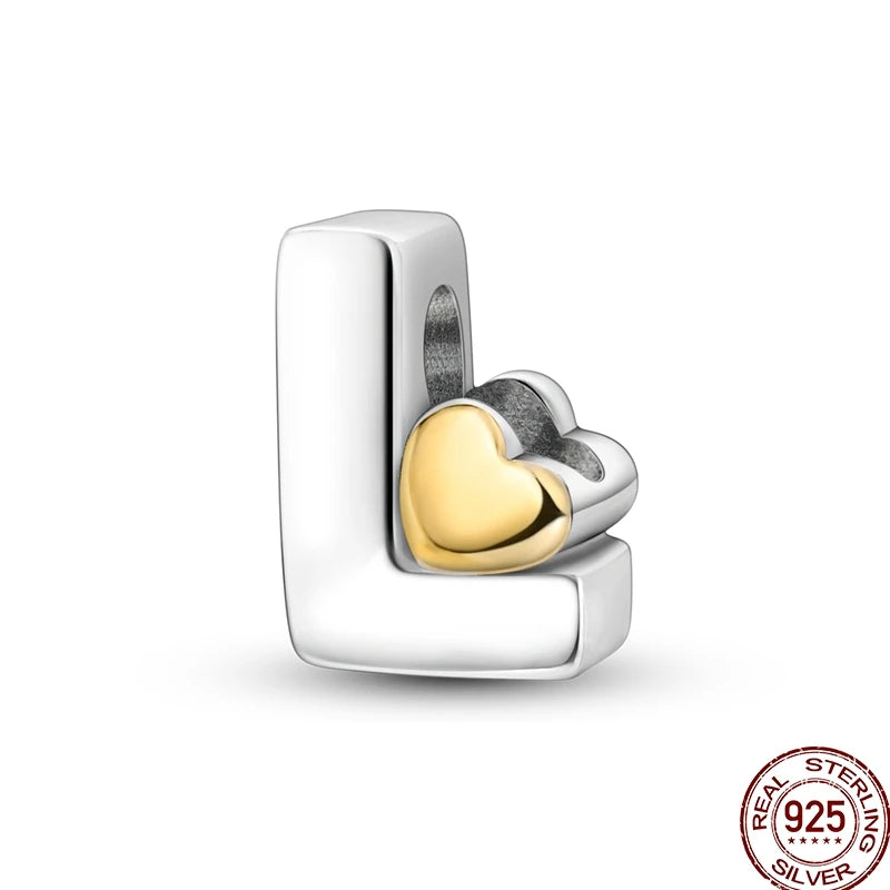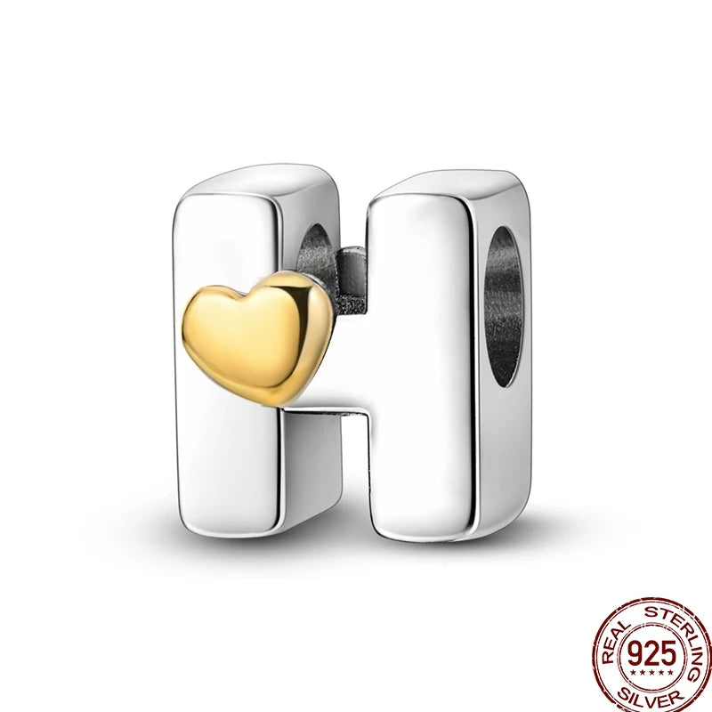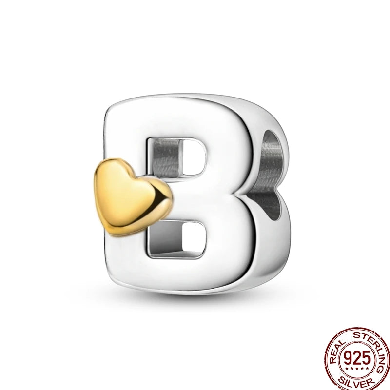 Fit Original Bracelet Letter English Alphabet Charm Gold Heart Pendant 925 Sterling Silver Charm by Bazaar Hub