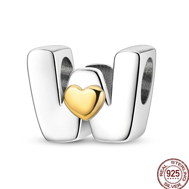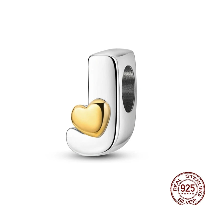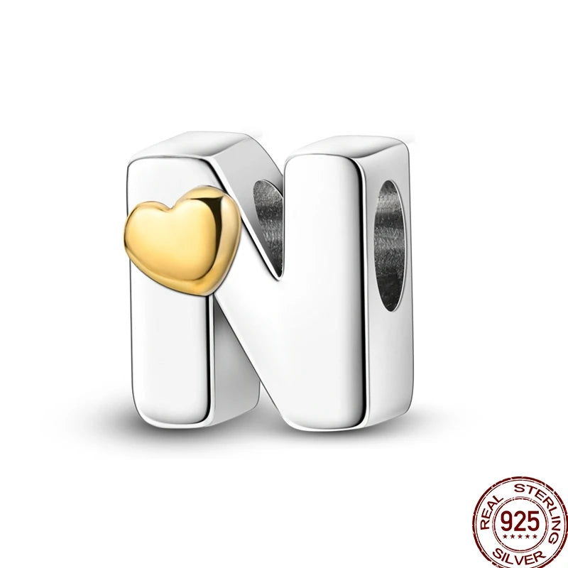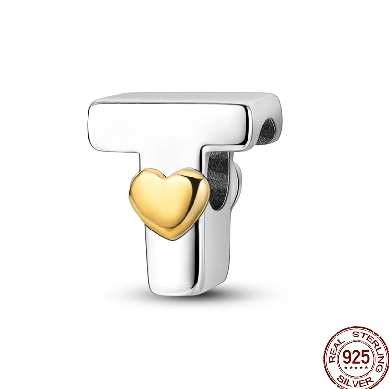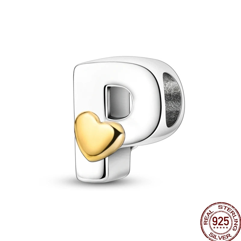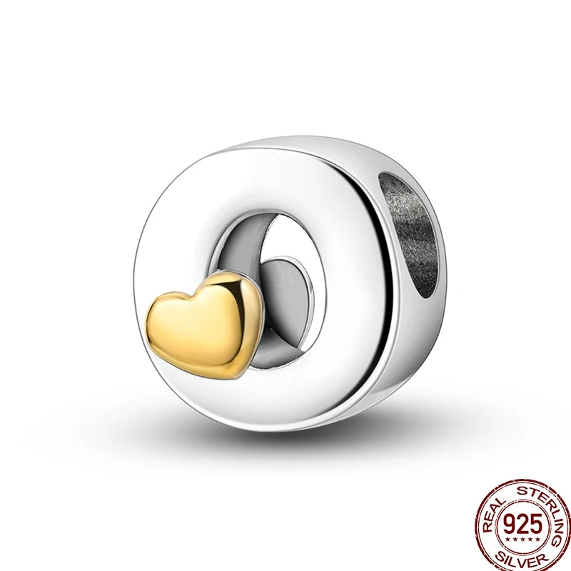 Fit Original Bracelet Letter English Alphabet Charm Gold Heart Pendant 925 Sterling Silver Charm by Bazaar Hub
