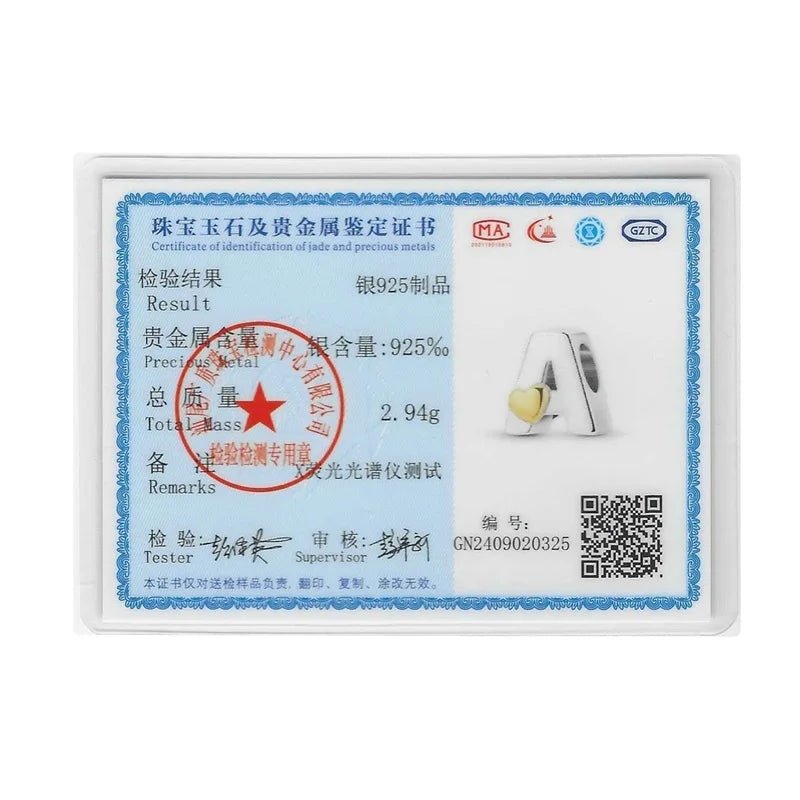 925 Sterling Silver Alphabet Charm Bracelet Gold Heart