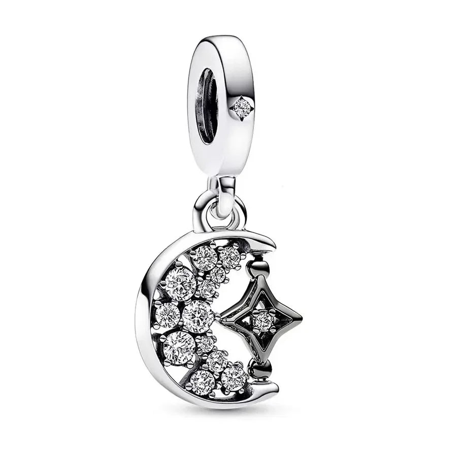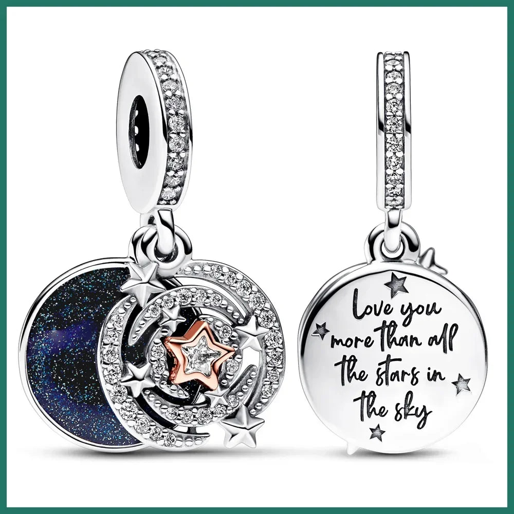 925 Sterling Silver Blue Star Gold Sun Pink Moon Zircon Beads Charms for DIY Jewelry Gifts
