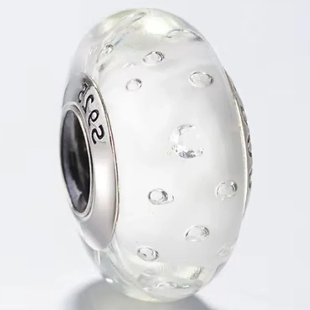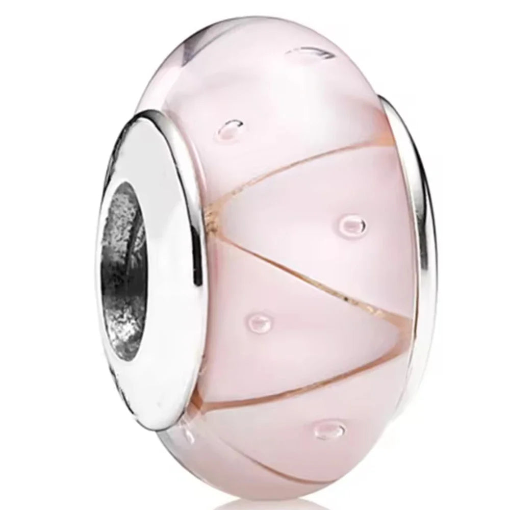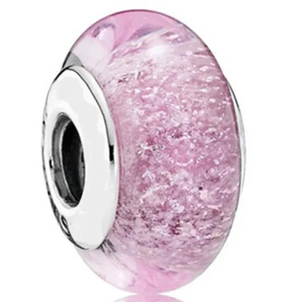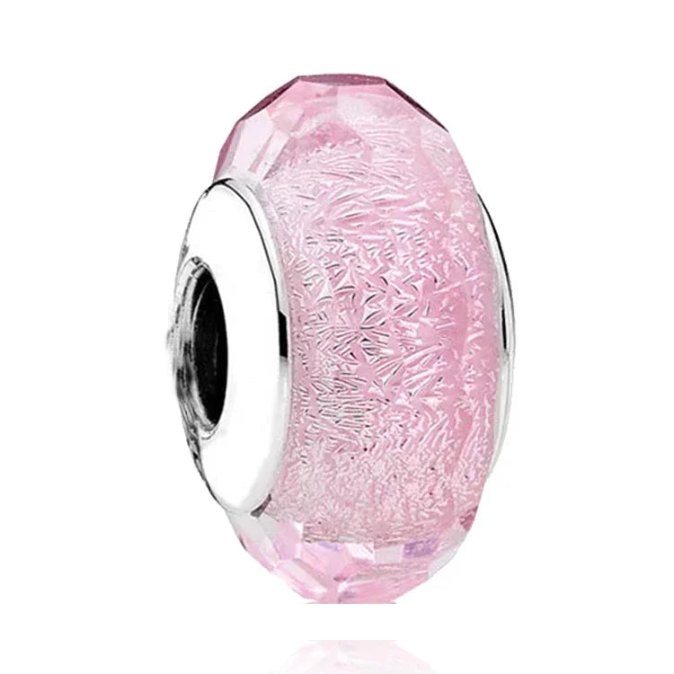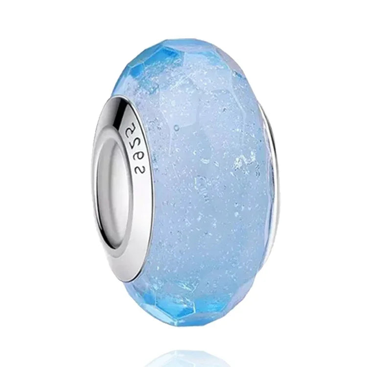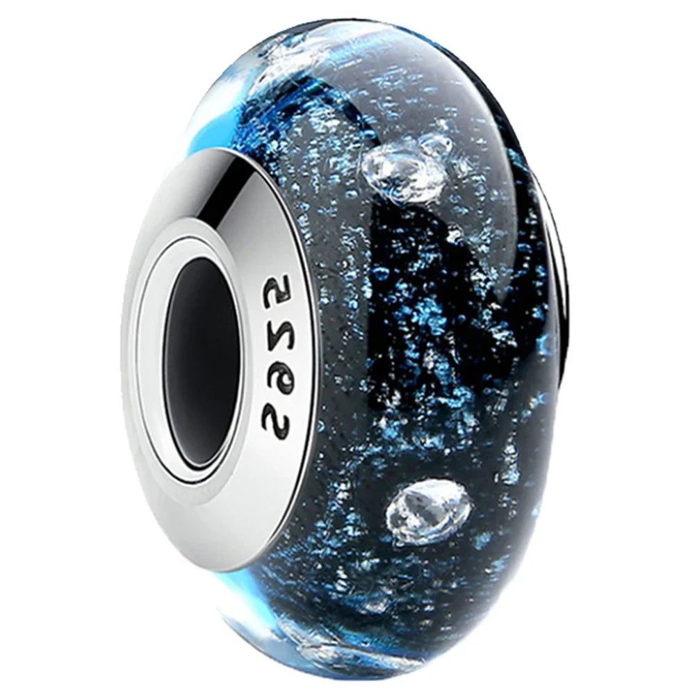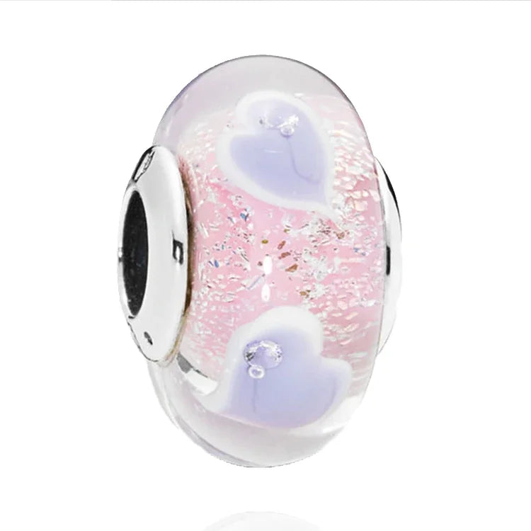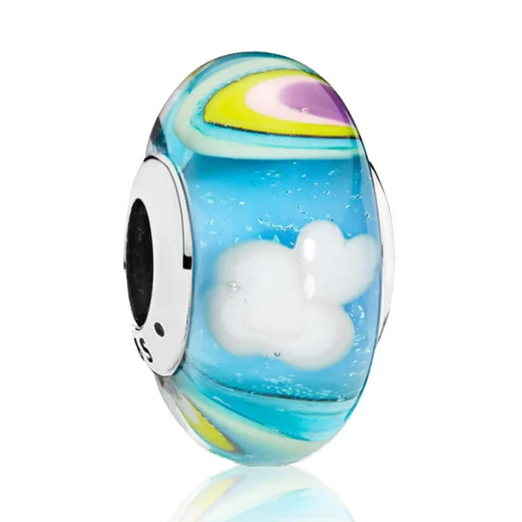 925 Sterling Silver Cosmic Rainbow Murano Glass Beads with Flower and Leaf Charms for DIY Women Jewelry