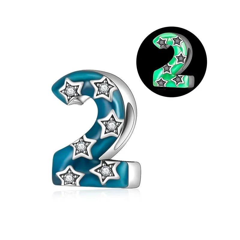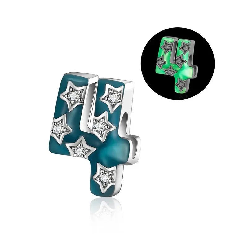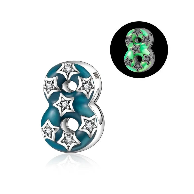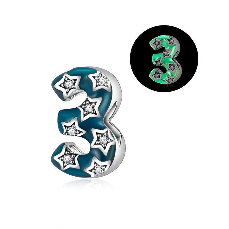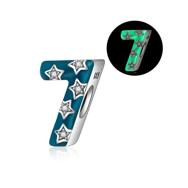 New 925 Sterling Silver Numeral Noctilucent Bead Dangle Charm by Bazaar Hub adds a luminous touch to your original brand bracelet or necklace. Crafted from genuine 925 sterling silver, this fine jewelry piece features a dazzling zircon stone that gently glows in the dark, making it perfect for day-to-night wear.