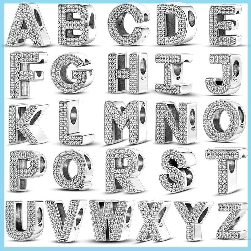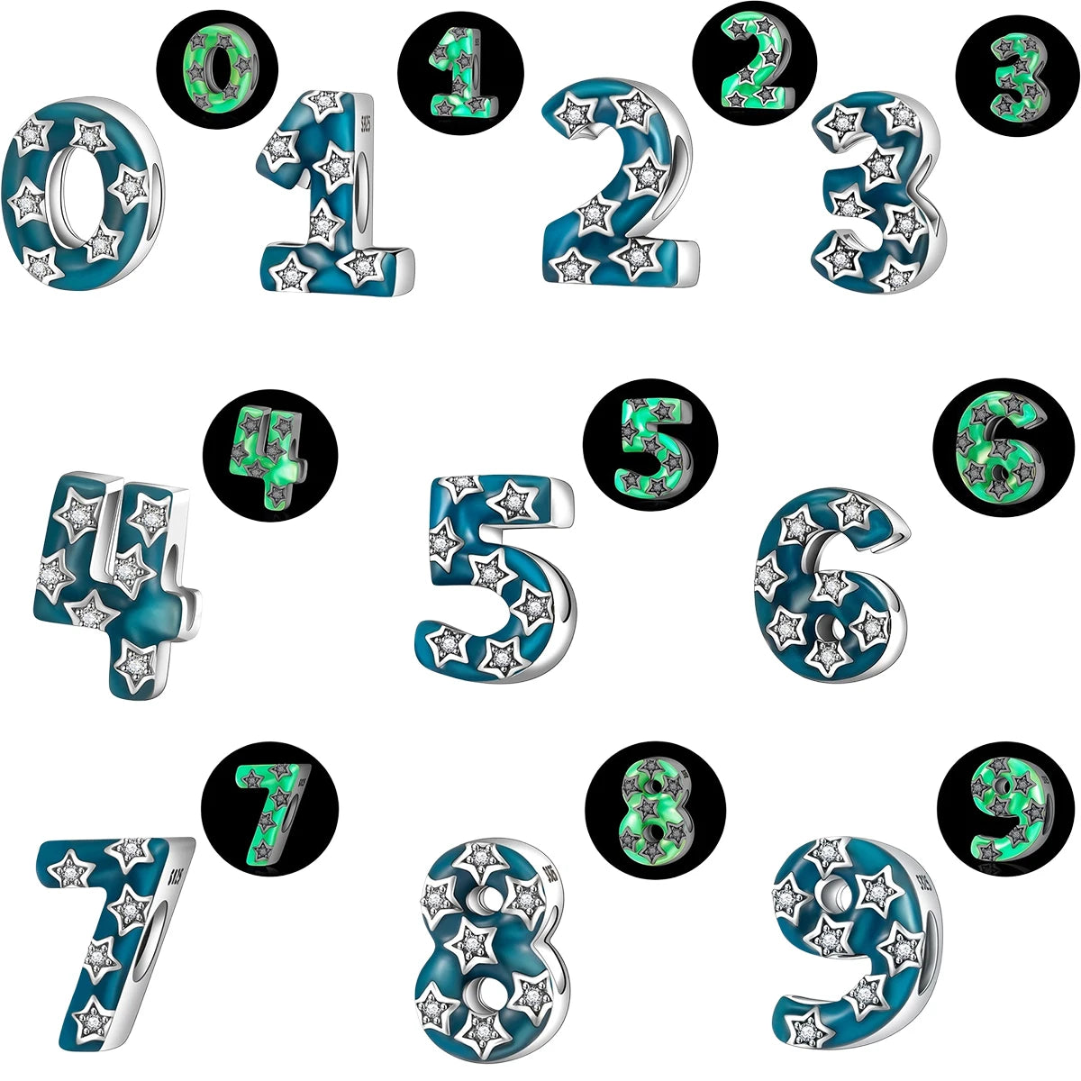 925 Sterling Silver Numeral Noctilucent Zircon Bead Dangle Charm for Bracelet and Necklace Gift