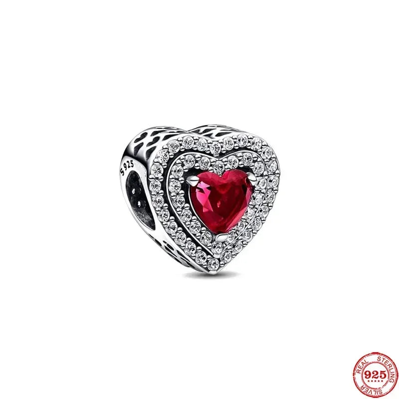 925 Sterling Silver Red Love Bunny Dog Skull Ladybug Flower Zircon Beads Charms for DIY Women Bracelet Necklace Gift