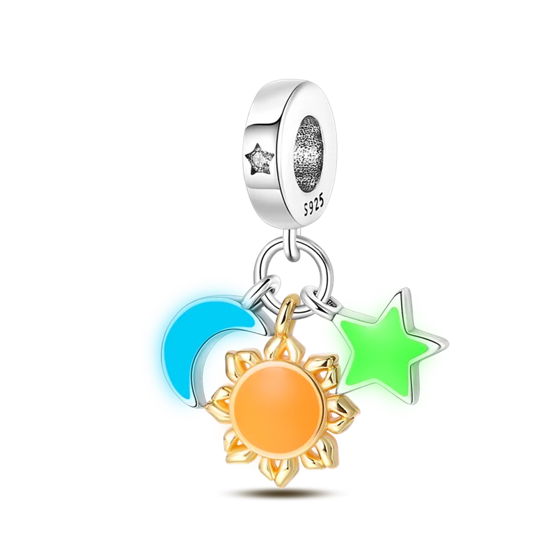 925 Sterling Silver Starry Sky Moon Earth Star Beads