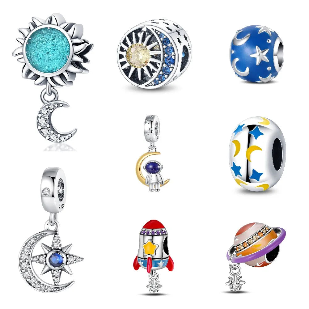 925 Sterling Silver Starry Sky Moon Earth Star Charm Beads by Bazaar Hub — S925 zircon-accented charms designed for original Pandora bracelets.