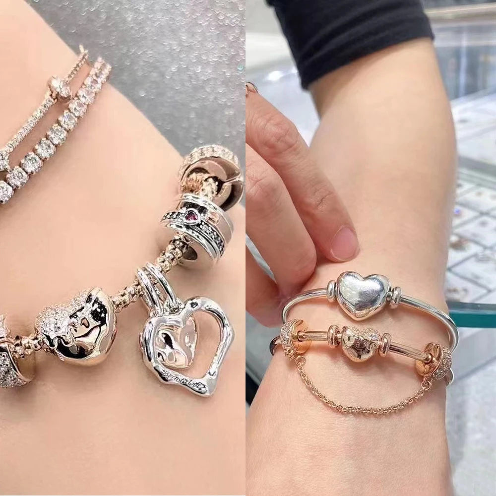 925 Sterling Silver Zirconia Heart Gold Silver Charm