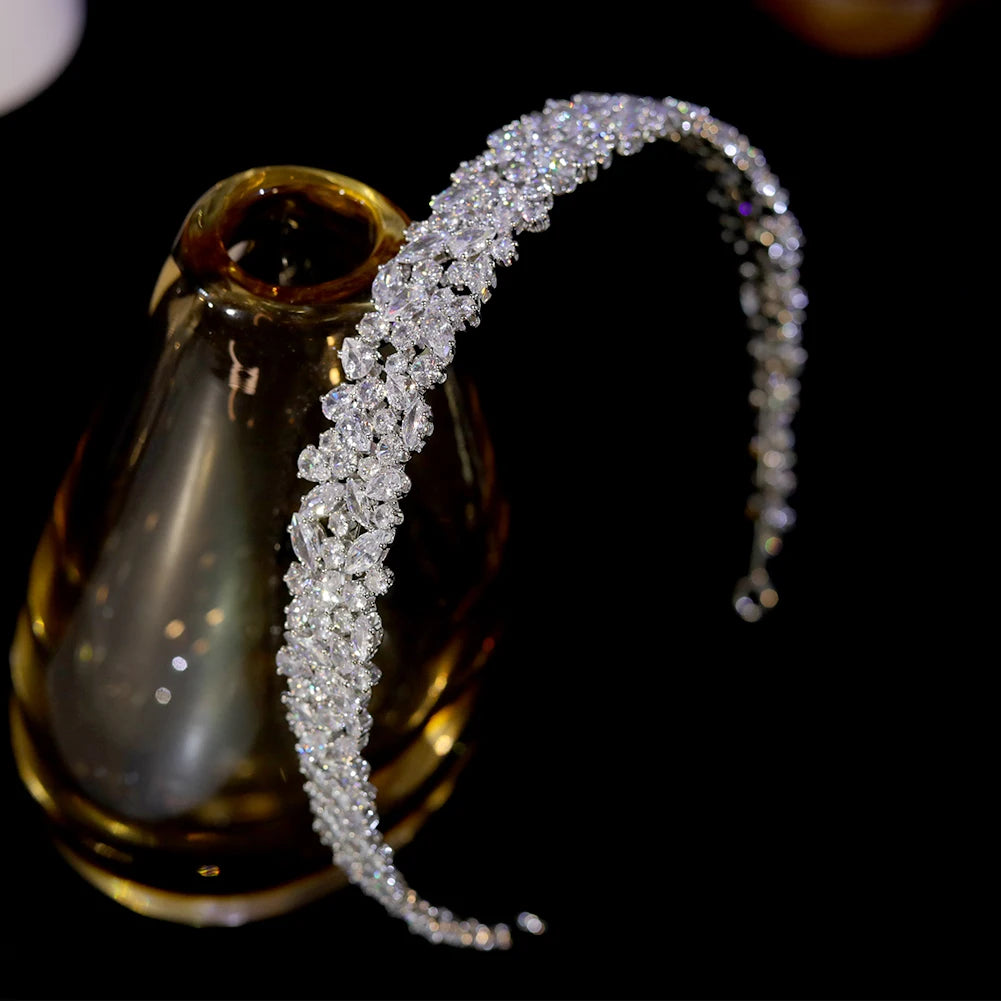 Introducing the ASNORA Luxury CZ Headbands, a stunning accessory crafted to elevate bridal elegance. Meticulously designed with high-quality cubic zirconia, this silver color bridal crown exudes sophistication and timeless beauty, perfect for weddings and special occasions.