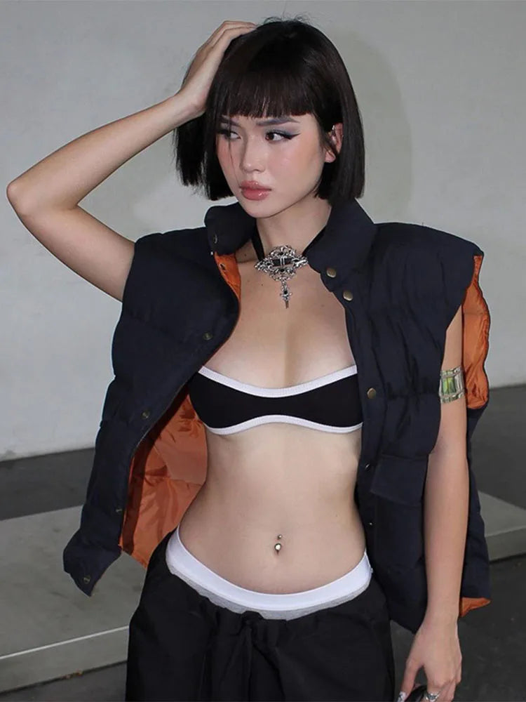 Black Crop Top Print Sleeveless Tank Y2K Grunge Camisole