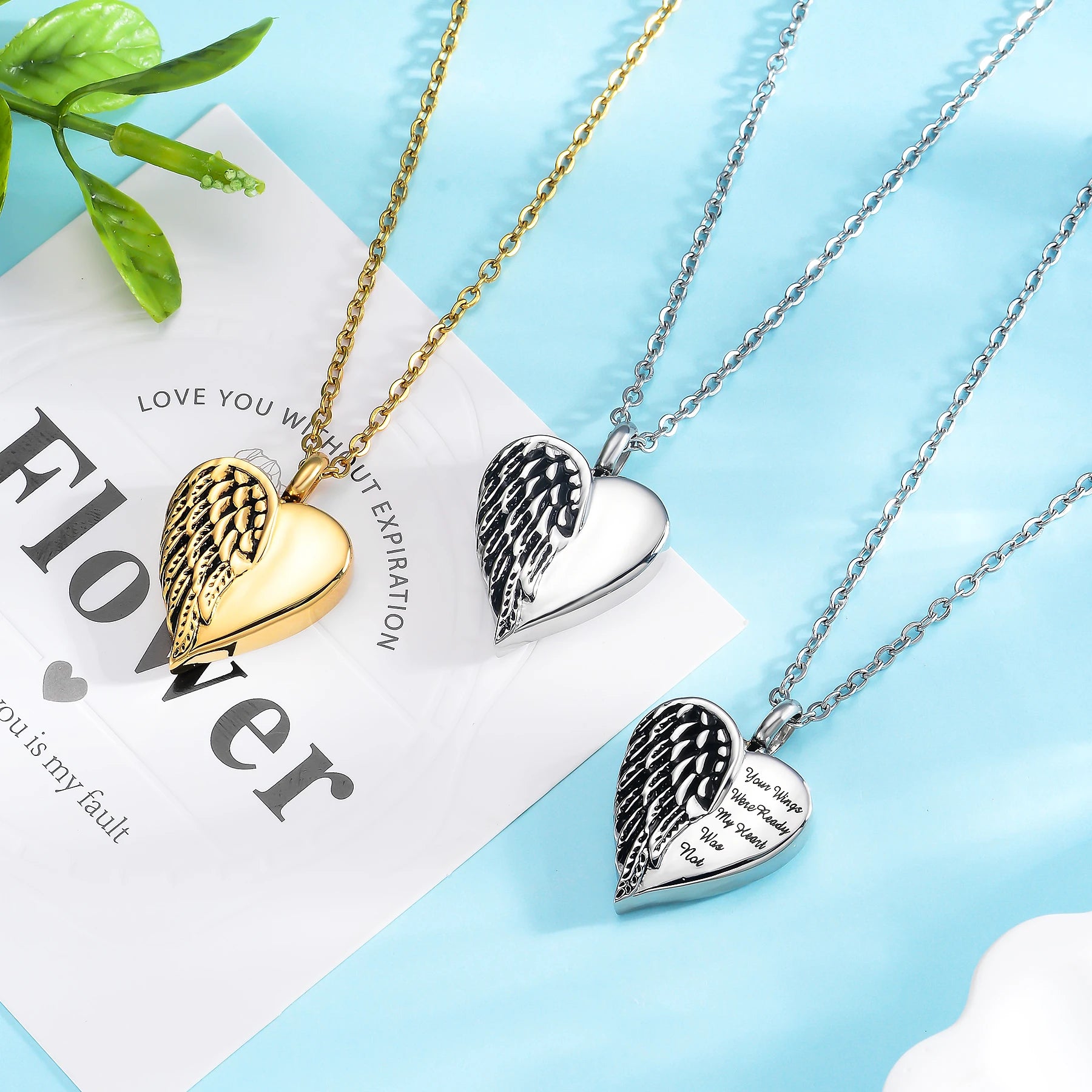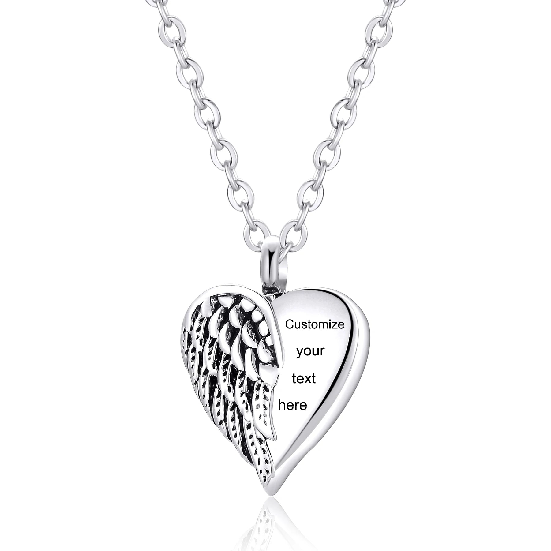 Customized Stainless Steel Angel Wing Heart Urn Necklace Memorial Keepsake Jewelry