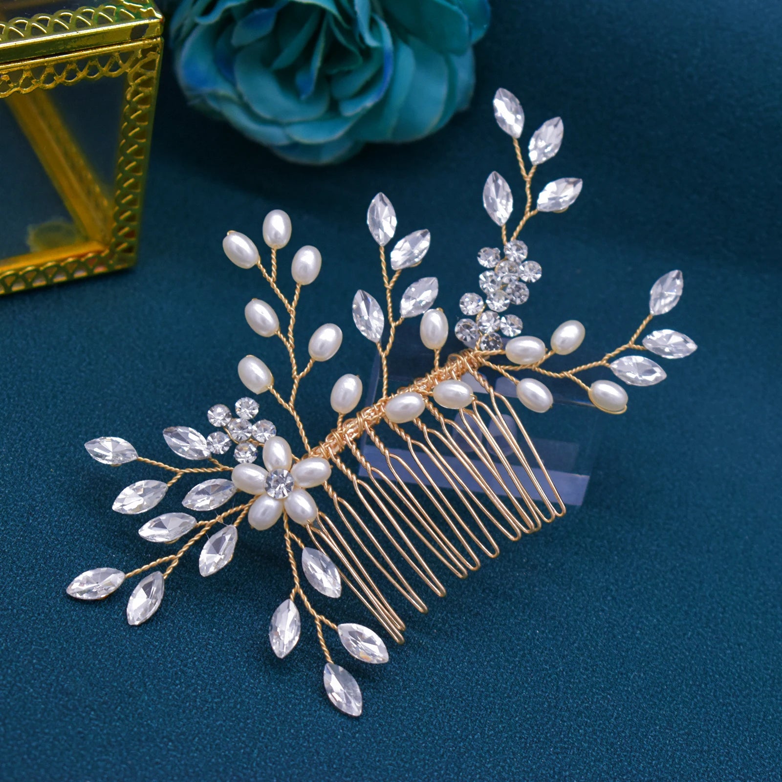 Elegant Crystal Bridal Hair Comb Silver Gold Wedding Headpiece for Women