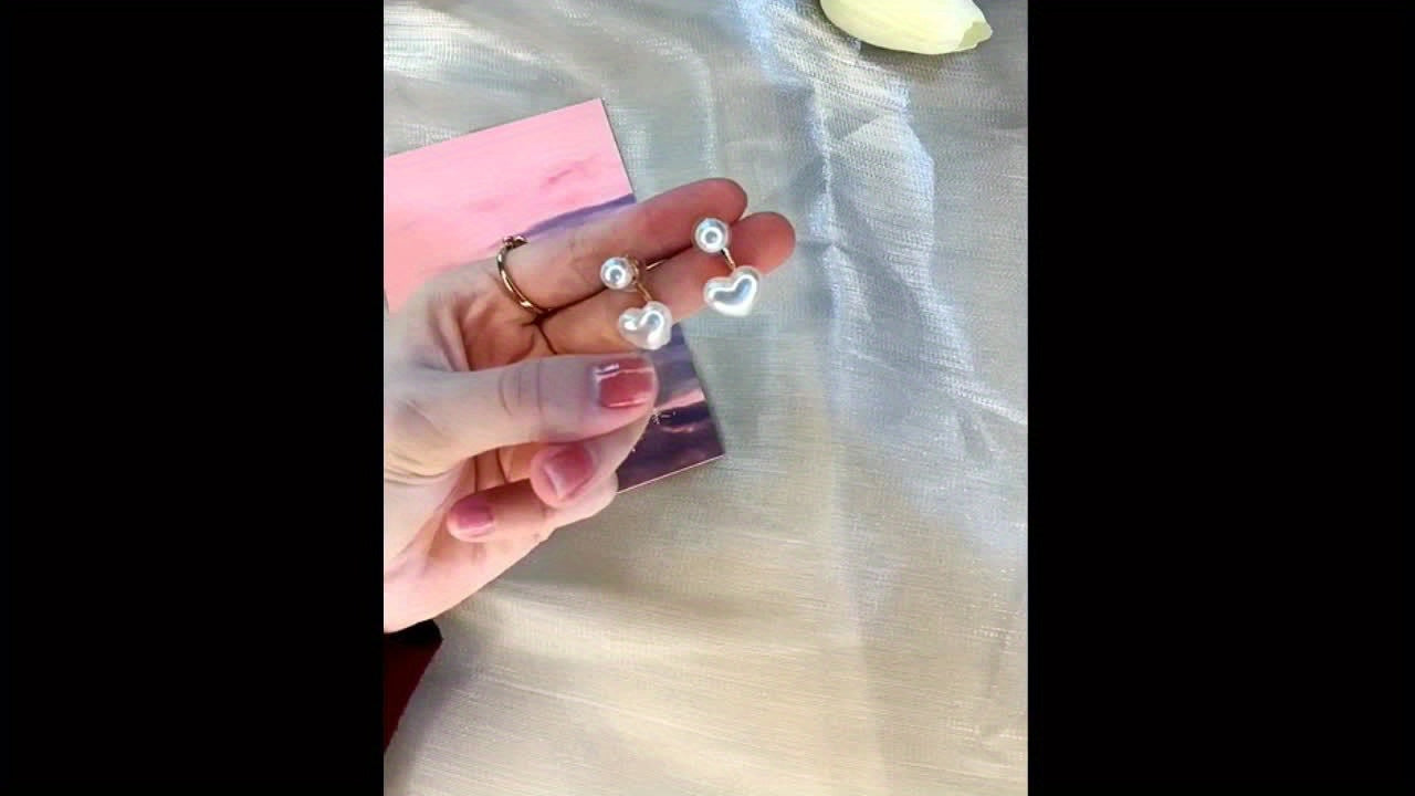 Introducing the Heart Pearl Decor Stud Earrings from Bazaar Hub, a brand renowned for its exquisite jewelry pieces. These Simple Heart Pearl Drop Earrings are crafted to perfection with imitation pearls, bringing a touch of elegance to any outfit.