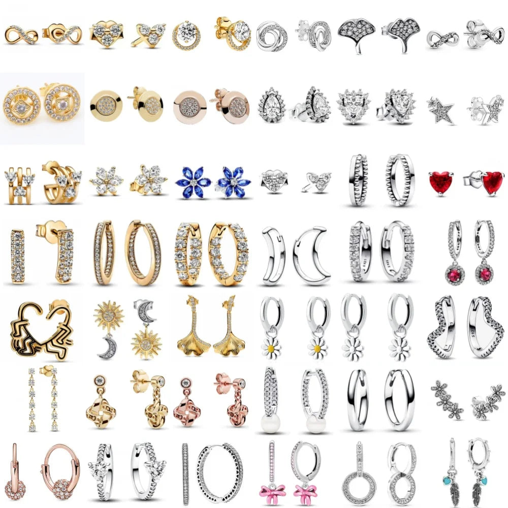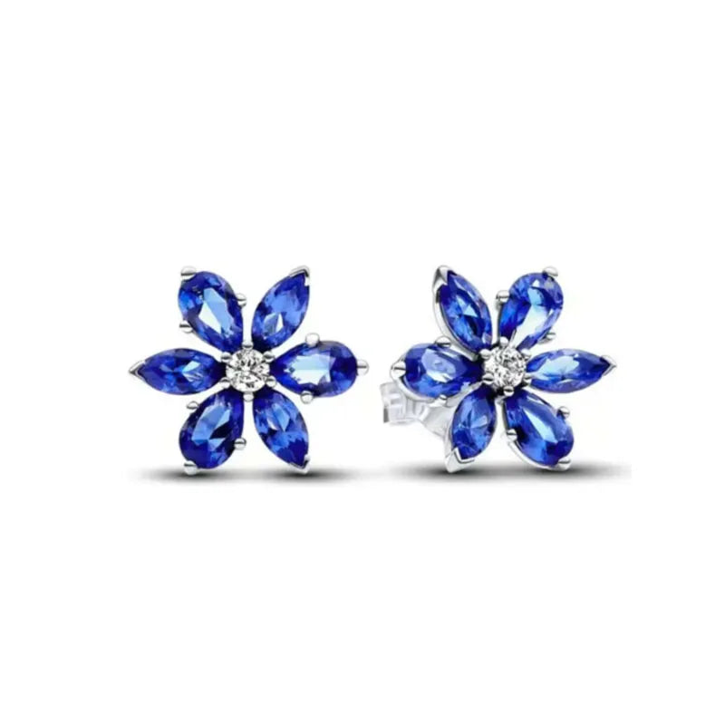 European 925 Silver Blue Snowflake Moon And Heart Zircon Stud Earrings For Women Holiday Exquisite Charm Jewelry
