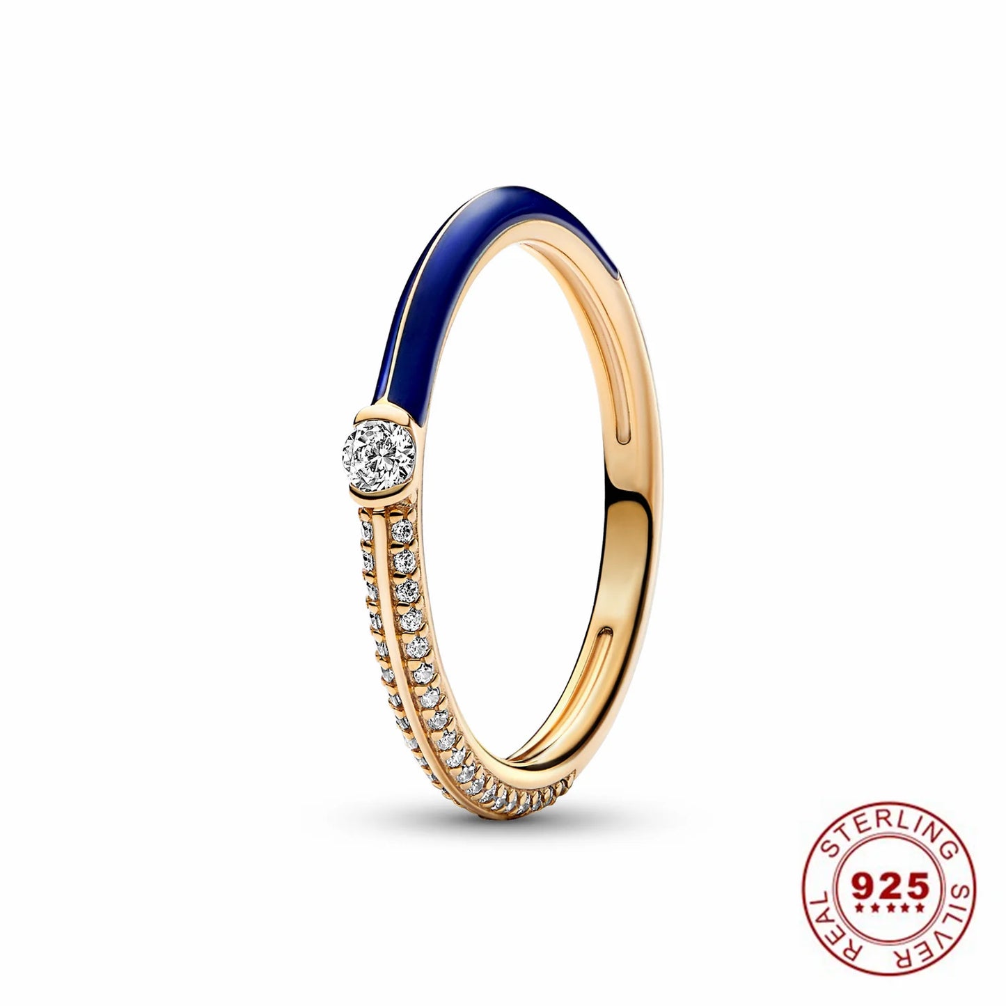 Hot Sale Original 925 Sterling Silver Tiara Heart Sparkling Wedding Rose Gold Ring for Women Sun and Moon Crystals Jewelry
