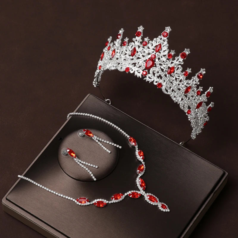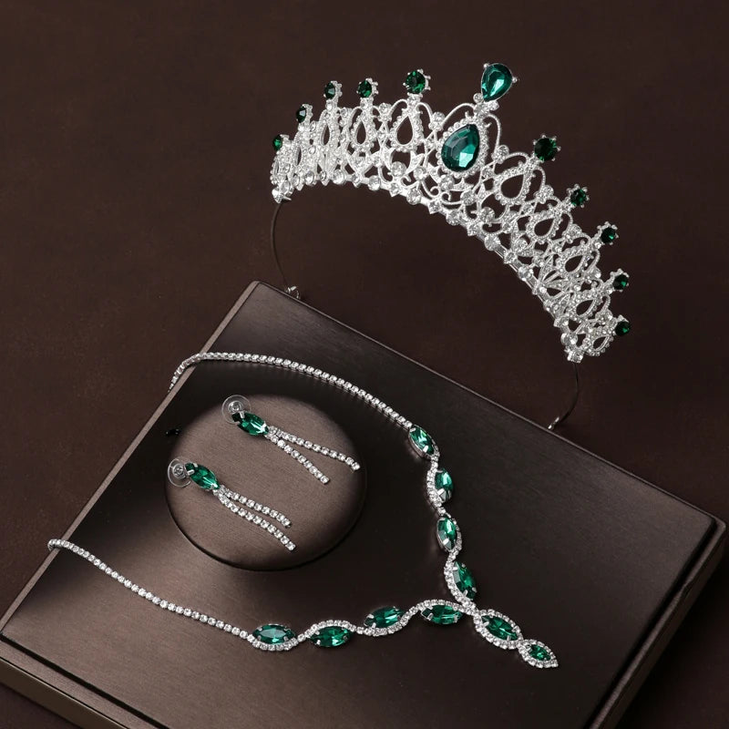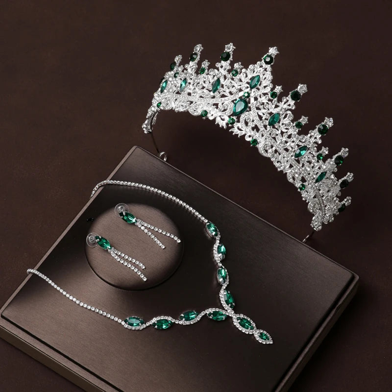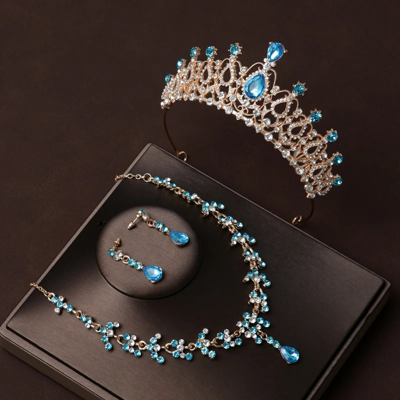 Itacazzo Gold Bridal Headwear Set with Crown, Necklace, and Earrings for Women